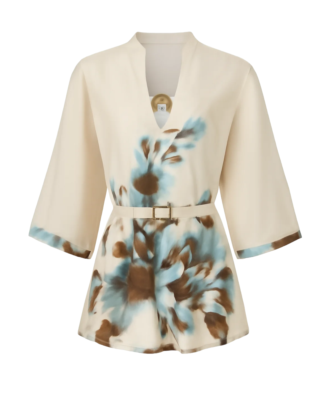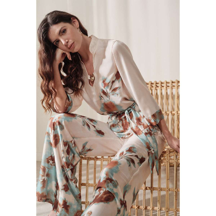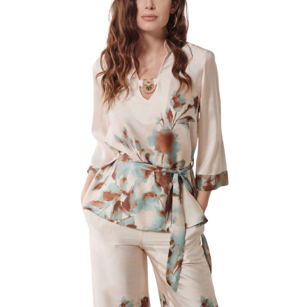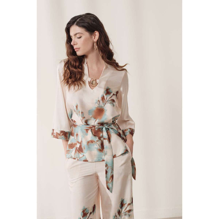 Bluză Enzzo Venus Mint. Bluză de damă imprimată pe un material stabil, cu textură satinată și mâneci trei sferturi, de la compania Enzzo.